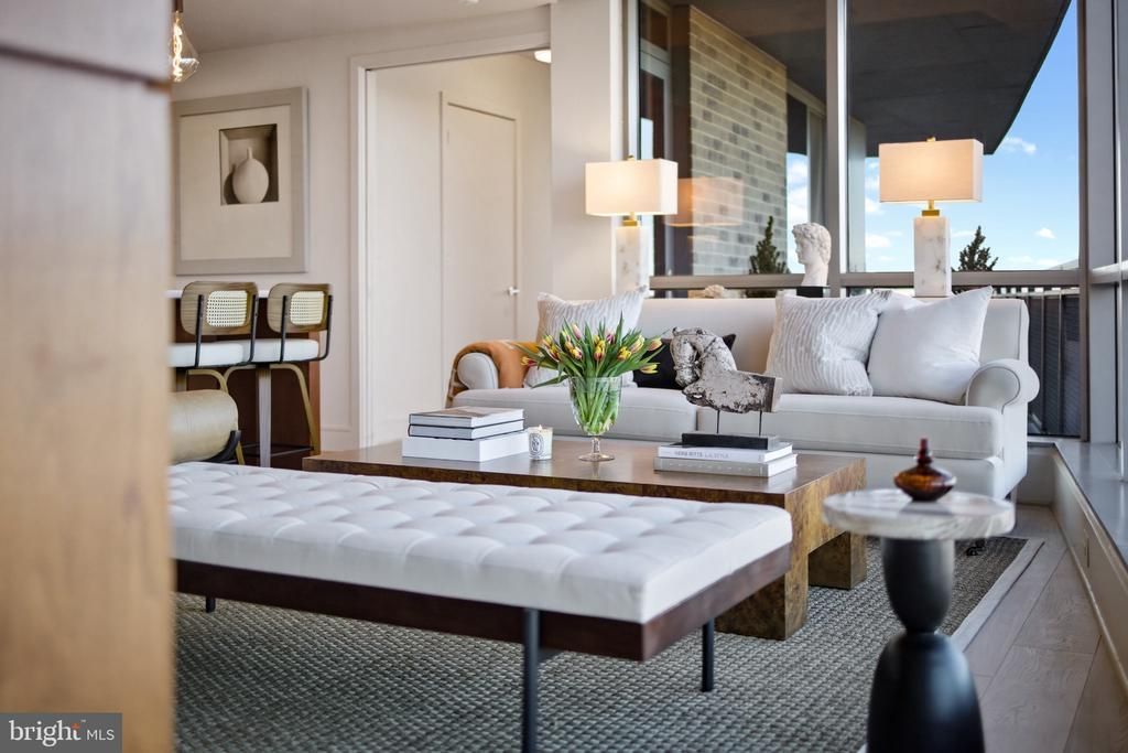 A Rare New Opportunity in Arlington’s Courthouse. Never Lived In. Three Bedrooms, Three Full Baths, Two Garage Spaces. Available Turn Key Furnished. Three bedroom, three bath residences in luxury full service buildings in Arlington’s Courthouse neighborhood are exceptionally rare. Finding one that’s never been lived in and offers truly iconic views is almost unheard of. Residence 1204 at The Odyssey delivers exactly that. This essentially brand new condominium offers the security, service, and modern amenities today’s luxury buyer expects, paired with the walkability that defines the Courthouse lifestyle. Restaurants, outdoor dining, coffee shops, parks, fitness studios, and Metro access are all just outside your door. The floor plan is thoughtful and well balanced, offering three bedrooms and three full baths, a configuration that seldom becomes available in this building or in this neighborhood. Every bath includes a shower, and the marble primary bath features a Jacuzzi soaking tub, one of two tubs in the residence. Two garage parking spaces convey. What truly sets this home apart is both the view and the privacy. Floor to ceiling windows frame direct sightlines to the Washington Monument and the U.S. Capitol, with clear views toward the National Cathedral and uninterrupted jet line perspectives over the Potomac. Because of the position of Residence 1204 within the building, you are not pressed against another high rise. Instead, you enjoy open vistas that afford a genuine sense of space and privacy that’s very difficult to find in this area. The private wraparound terrace expands the living space in a meaningful way. It’s currently set up to seat six people comfortably for dinner and could easily accommodate more. The Odyssey offers a full suite of amenities including a fitness center, community gathering spaces, and the spectacular rooftop deck with pool where the panoramic views continue. Whether enjoying the Fourth of July from your private terrace or from the rooftop with neighbors, the fireworks display becomes part of your home. Designer furnishings purchased specifically for the sale are brand new. The full package, including art and accessories, is available separately for $25,000, allowing this residence to be purchased completely turnkey and ready for modern living at the highest level in Arlington’s Courthouse neighborhood, with some of the most spectacular views in the region.