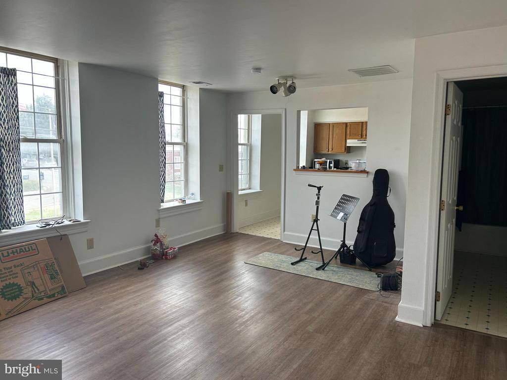 One bed studio apartment in the heart of downtown Berryville. This spacious unit has a living room, full bath and kitchen with passthrough. Large windows allow for tons of natural light overlooking Main Street. Stackable laundry conveniently located off kitchen. This is a second floor unit. Requires a minimum of 650 credit score, no exceptions.